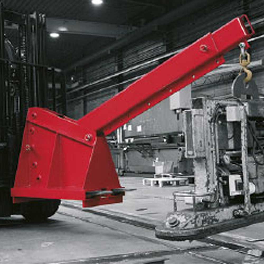 El brazo grúa pluma es una solución para la manipulación de mercancías no paletizadas de diversos tipos. Gracias a este accesorio que se instala en las horquillas, la carretilla puede utilizarse como una pequeña grúa.