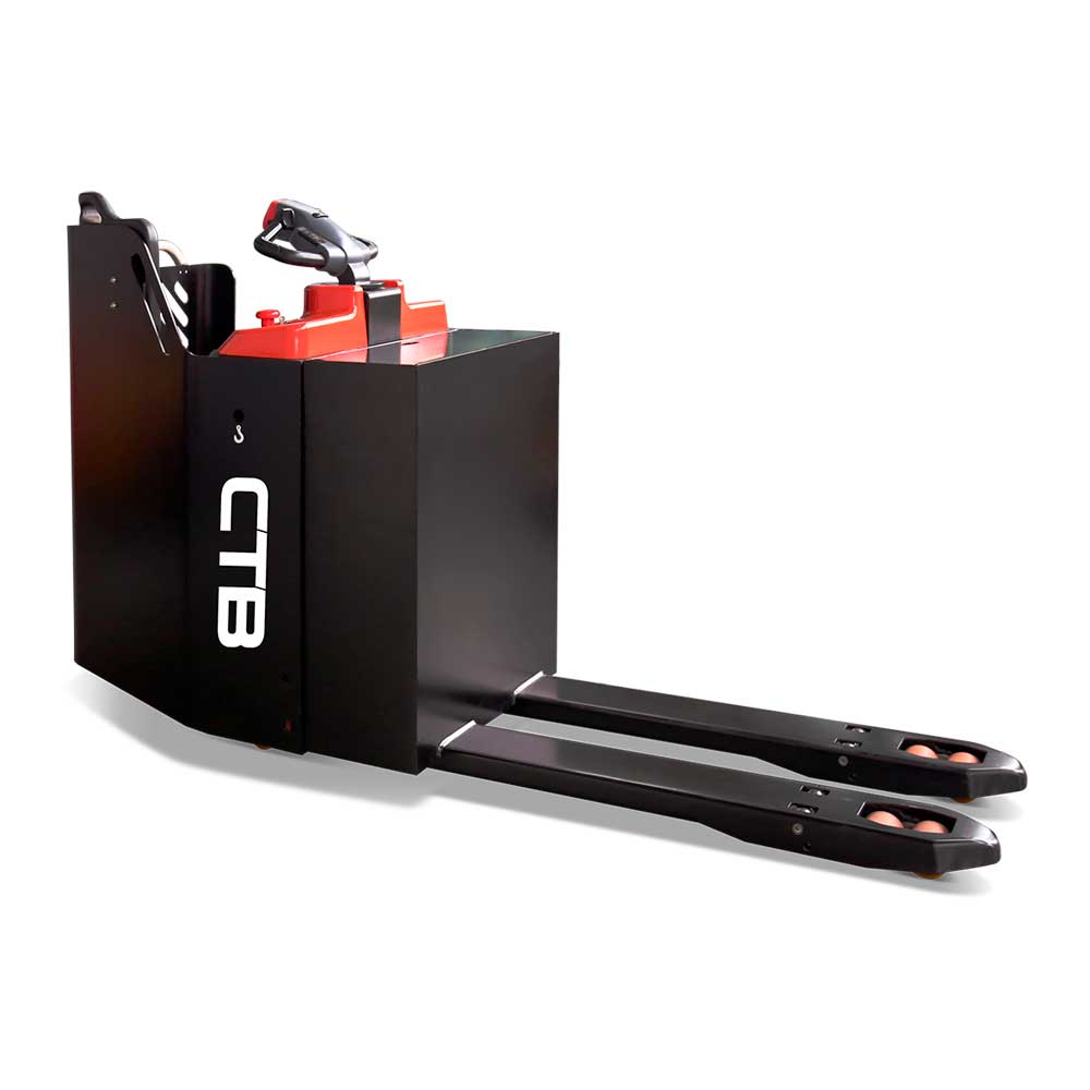 La transpaleta eléctrica desarrollada por CTB, es la evolución de la transpaleta manual, reduce la tensión y evita lesiones del operario. Funciona mediante un motor eléctrico que acciona las palas, permitiendo levantar y mover cargas de manera más eficiente y segura que manualmente.